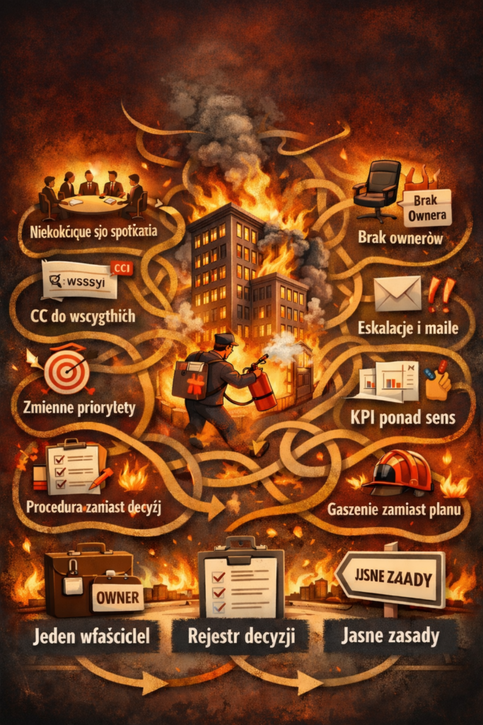 Nie pyta wyłącznie co robimy, ale po co. Osadza decyzje w szerszym obrazie, pozwala ludziom zobaczyć swoje miejsce w całości i przetrwać momenty chaosu bez uciekania się do kontroli.